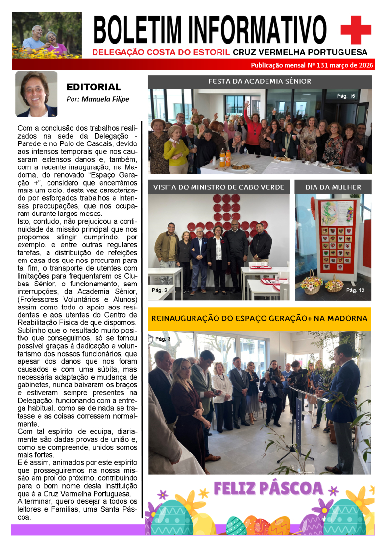 Capa – Editorial; Festa da Academia Sénior; Reinauguração do Espaço Geração+ na Madorna; Visita do Ministro de Cabo Verde; Dia da Mulher.