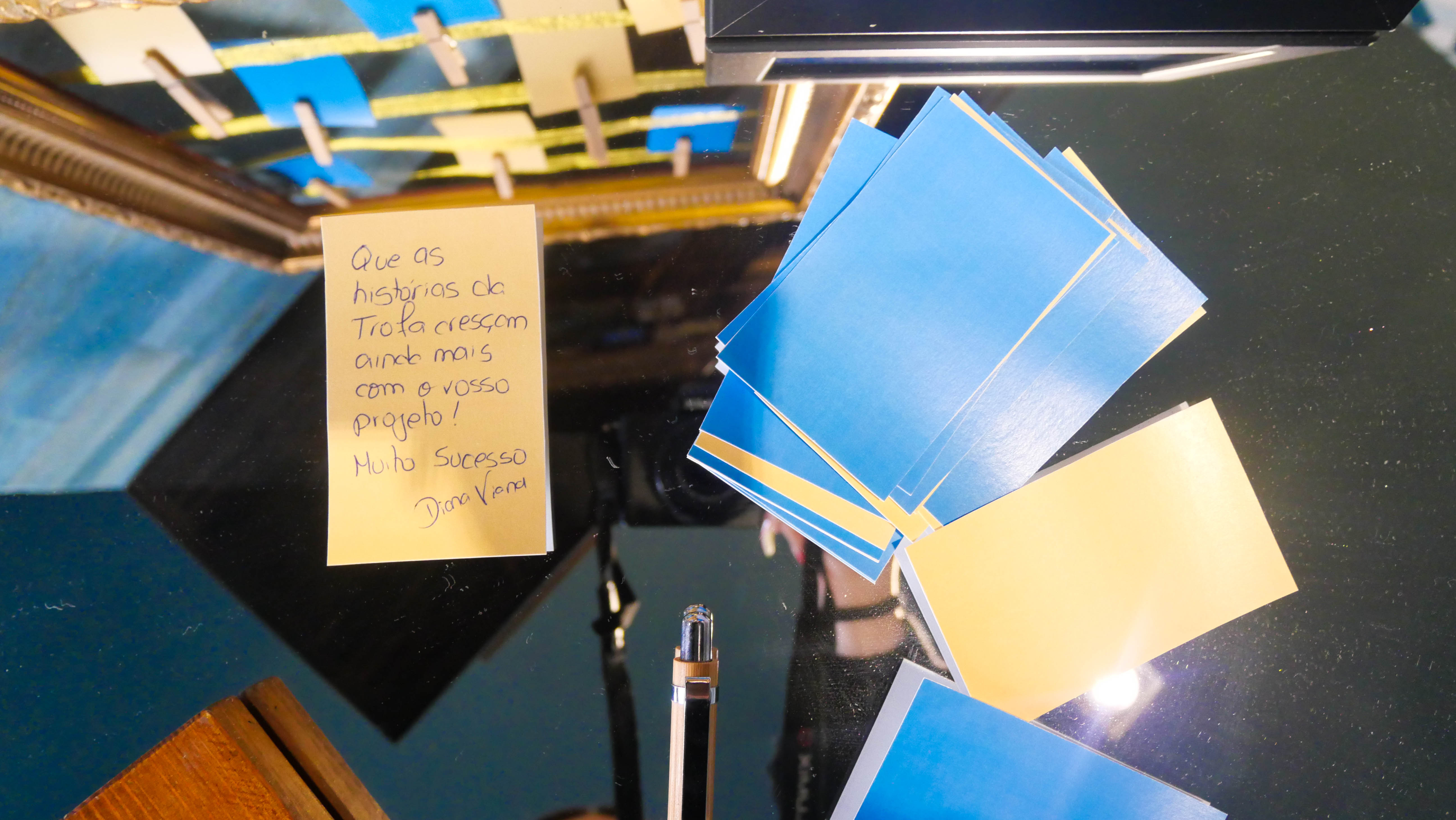 Nem quem conta a história, nem quem lê, saberá, até ao momento em que se encontram, quem são. E aqui está a magia, porque vamos julgar o livro pela capa, pelo seu título, cor e frase. Não sabemos o nome da pessoa, a idade, a profissão... Só quando estamos frente a frente.
